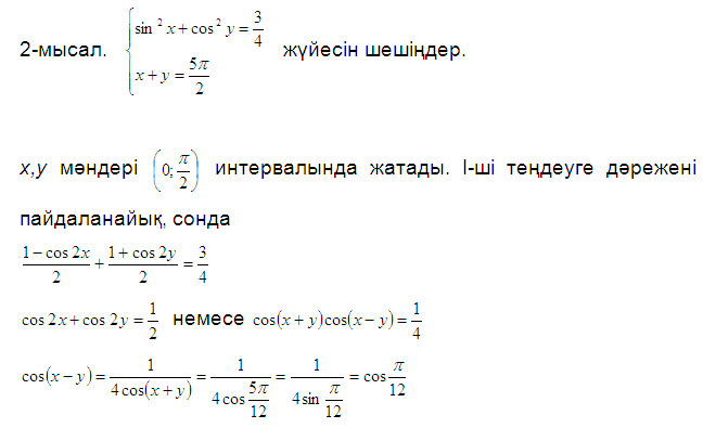 № 30 Тригонометриялық теңдеулер мен теңдеулерд шешу жүйелерін шешу әдістері.